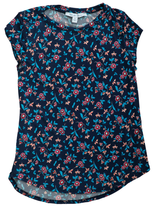 Let your style bloom in the Women's Floral Print Cap Sleeve Top. With a flattering silhouette and soft cap sleeves, this top brings a touch of grace to your everyday wardrobe. The floral print adds a cheerful charm while the 25 inch length offers just the right coverage for pairing with jeans skirts or shorts.