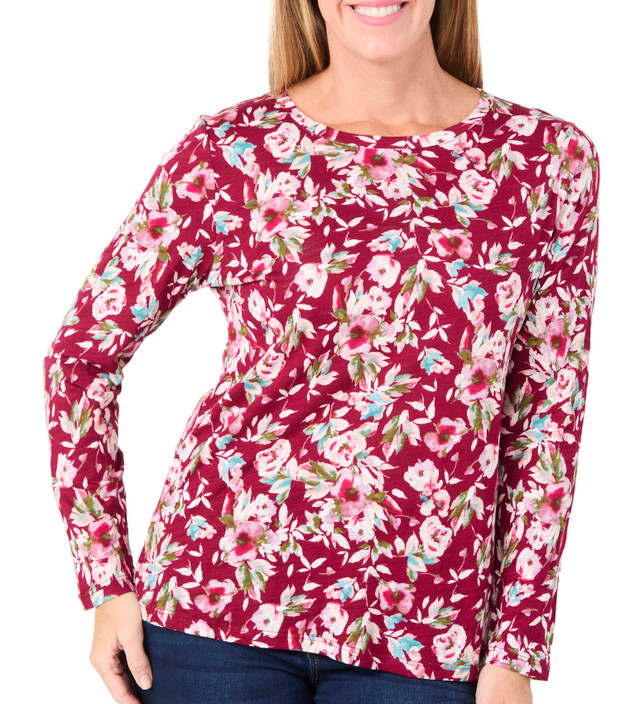 This long sleeve top offers a soft and breathable feel with a premium blend of 60% cotton and 40% modal. Designed for everyday comfort and a clean, polished look. Machine washable and safe to tumble dry, making it easy to care for and perfect for layering or wearing on its own.
