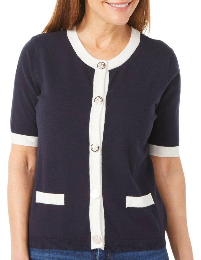 This Women's Short Sleeve Button Front Cardigan is the perfect blend of style and comfort. Made from a rayon, polyester, and nylon blend, it offers a soft, lightweight feel thats perfect for layering. The classic button-front design adds a polished touch, while the short sleeves keep it breezy and versatile for warmer weather. With a length of 26 inches, it pairs effortlessly with jeans, skirts, or dresses for an easy, chic look.