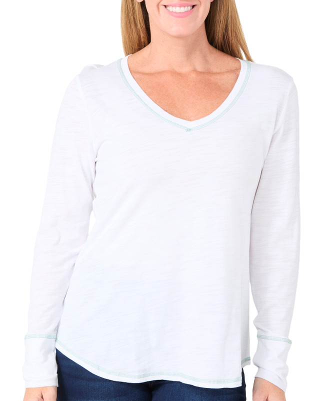 This long sleeve top offers a soft and breathable feel with a premium blend of 60% cotton and 40% modal. Designed for everyday comfort and a clean, polished look. Machine washable and safe to tumble dry, making it easy to care for and perfect for layering or wearing on its own.