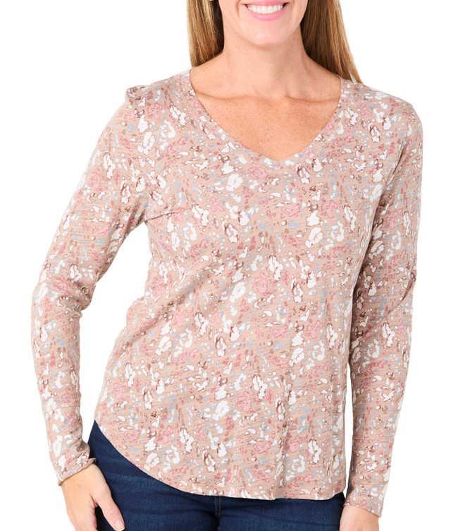 This long sleeve top offers a soft and breathable feel with a premium blend of 60% cotton and 40% modal. Designed for everyday comfort and a clean, polished look. Machine washable and safe to tumble dry, making it easy to care for and perfect for layering or wearing on its own.