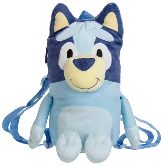The Bluey backpack purse is shaped like the lovable Blue Heeler herself and crafted from soft microplush polyester for lightweight comfort. It features adjustable straps, a top loop for easy hanging, and a zip pocket closure to keep essentials secure. With a 5L capacity and 16in height, it is perfect for young fans ages 3 and up. A fun and functional companion for everyday adventures.