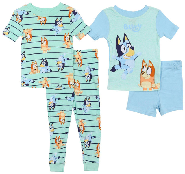 Dress your little one in playful style with our toddler boys 4-piece set featuring a fun Bluey motif. This set includes two short sleeve tees, one pair of pants, and one pair of shorts, all adorned with vibrant Bluey designs. Made from soft, breathable fabric, each piece ensures comfort and durability for all-day adventures. Perfect for mixing and matching, this versatile set is ideal for any season. Let your child enjoy the magic of Bluey with this delightful and practical ensemble!