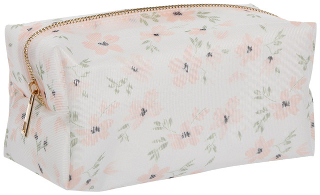 Keep your beauty essentials organized in the Floral Loaf Cosmetic Bag. With a charming floral design and a roomy interior, it measures approximately 9 in x 4.5 in x 4 in. Perfect for travel or everyday use, this compact bag fits easily into totes or luggages.
