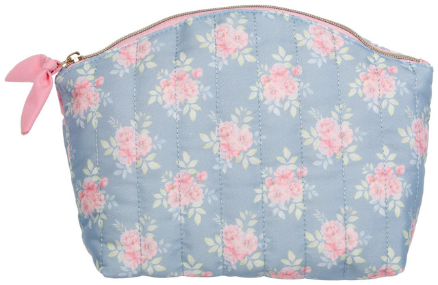Add charm to your routine with the Floral Quilted Cosmetic Bag. Crafted from pink floral quilted material, it features a zippered top and an interior slip pocket for organized storage. Ideal for daily essentials, travel, or vanity organization. Measures approximately 11 in x 8 in x 4 in.