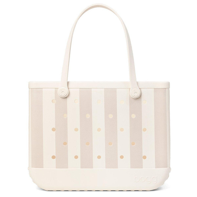 This Bogg Beach Tote Bag features a solid color design on a sturdy EVA fabrication with perforated sides, a durable pebbled bottom, and dual strap handles. Bag is durable, washable, sturdy, and tip-proof. Measures approximately 19 in x 9.5 in x 15 in.