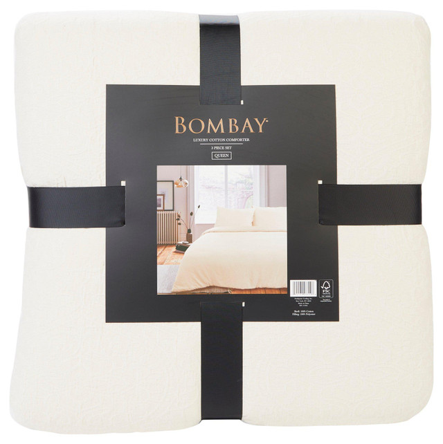 Bombay 3 Pc Cotton Queen Comforter Set - Medallion Matelasse