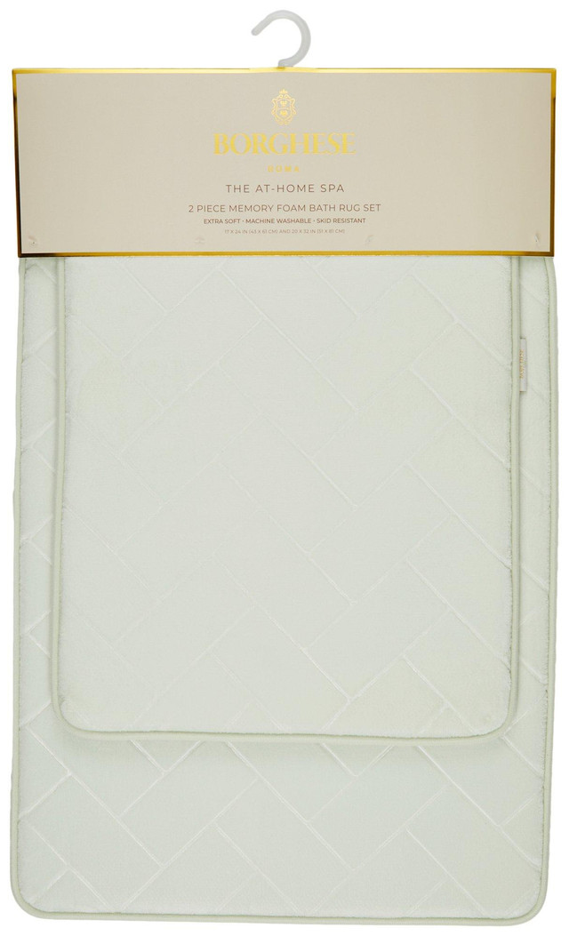Upgrade your bathroom experience with the 2-piece Memory Foam Bath Mat Set. These mats feature a soft plush surface that provides ultimate comfort underfoot. The non-slip backing ensures they stay securely in place, while the elegant circles pattern adds a touch of style to your decor. Perfect for adding both luxury and safety to your bathroom routine. Mats measure 17 in x 24 in. and 20 in x 32 in.