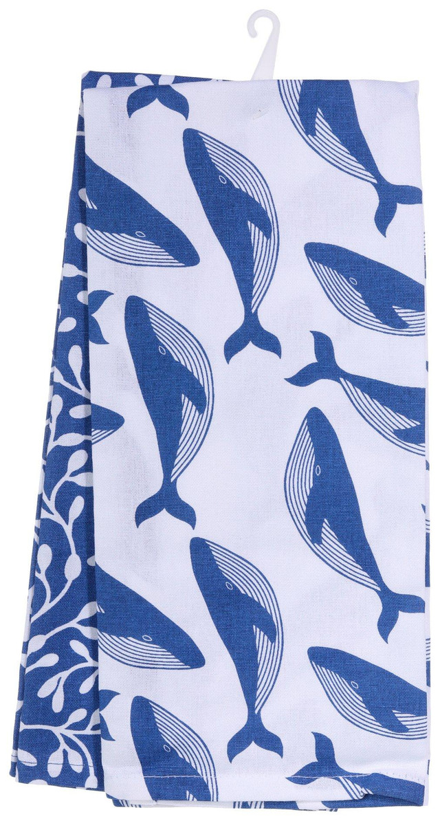 Add a splash of coastal charm to your kitchen with these whale and floral tea towels. These delightful towels features vibrant designs, perfect for nature lovers. Made from high-quality, absorbent cotton, it's ideal for drying dishes, wiping counters, or simply adding a decorative touch. Durable and machine washable, these tea towels combine functionality with style, making them a must-have for any home. Measures approximately 28 in x 18 in.