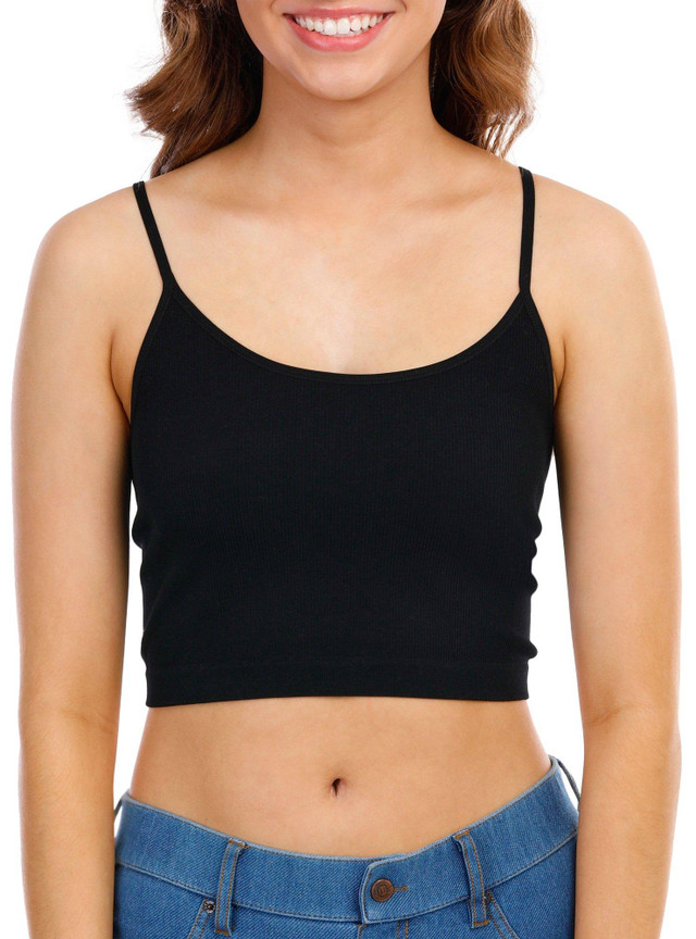 The Juniors Solid Ribbed Cropped Camisole, made from a blend of nylon and spandex, features adjustable straps and a cropped length. This camisole offers a stylish and comfortable option, perfect for layering or wearing on its own for a casual, chic look.