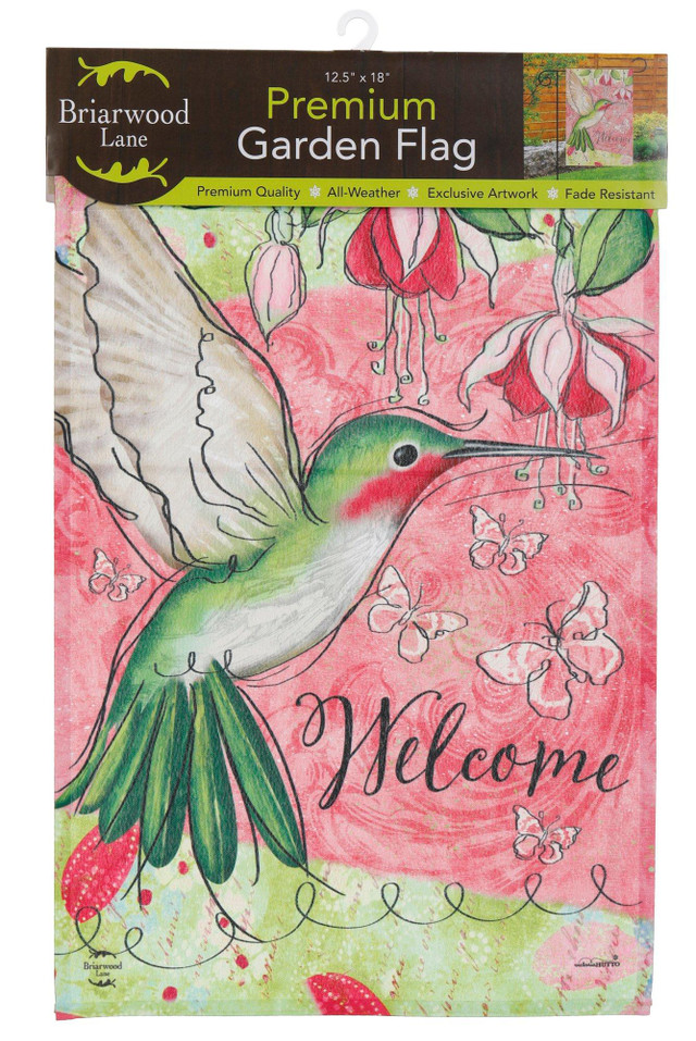 Brighten outdoor spaces with this 18 in Welcome Blissful Hummingbird Garden Flag, featuring a vibrant, colorful design on durable 100% polyester. Crafted to withstand the elements while adding cheerful charm to gardens, yards, or entryways. Ideal for seasonal or year-round display. Fabrication is 100% Polyester. Measures approximately 12.5 in x 18 in.