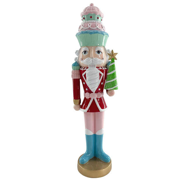 This whimsical pastel nutcracker from the Sugar Plums Collection features a cupcake-inspired hat, festive uniform, and a tiny Christmas tree with golden starperfect for adding a playful touch to holiday décor. Measures 18 Inch