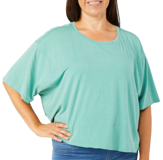 Stay cool and confident in this Plus Active Boxy Acid Wash Tee. With a solid color, round neckline, short sleeves, and a relaxed boxy fit, it delivers laid-back style and all-day comfort with a trendy, worn-in look. Fabrication 52% cotton, 48% polyester