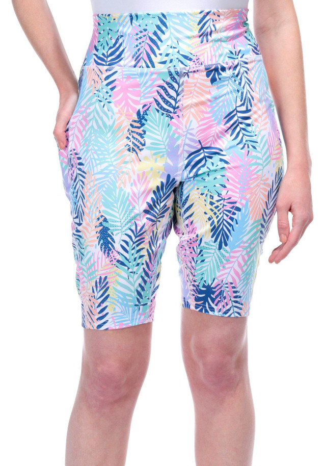 Introducing these latest Bike Shorts, designed for ultimate comfort and performance. These ventilated shorts feature a stylish palms print and offer superior UV protection, keeping you safe under the sun. With double side pockets, you can easily carry your essentials on the go. The quick-dry fabric ensures you stay cool and dry, no matter how intense your ride. Fabrication is 39% recycled polyester, 39% polyester, 22% spandex.