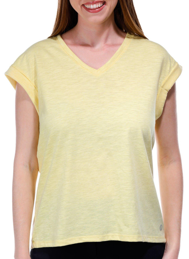 The Women's Roll Cuff Sleeve Knot Split Back Top offers a stylish and comfortable fit for any casual outing. Made from a blend of 56% polyester, 30% cotton, and 14% nylon, it combines breathability and durability with a soft feel. The roll cuff sleeves add a chic touch, while the knot split back design enhances the top's trendy and flattering silhouette, making it a perfect addition to your wardrobe. The top length measures approximately 25 in.