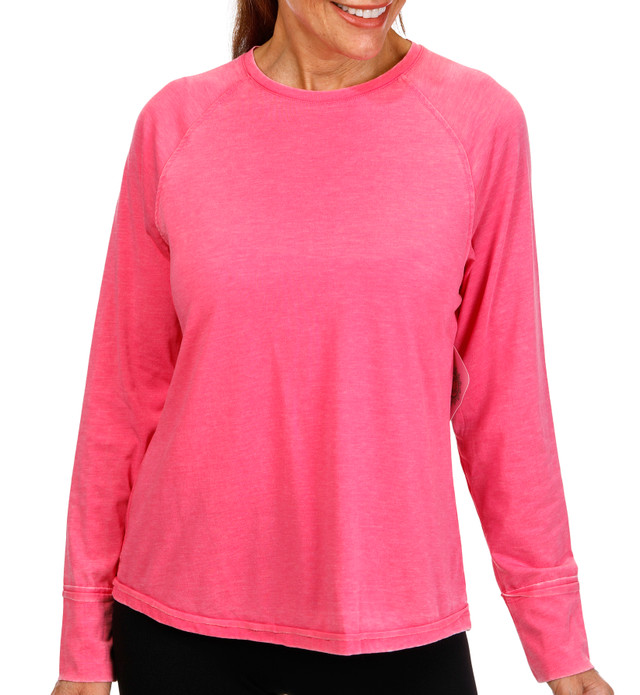Elevate your casual wardrobe with this Acid Wash Long Sleeve Top. It features a flattering scoop neckline and a stylish raw edge hem that adds a modern touch. Made from soft, breathable fabric, it's perfect for warm-weather days or layering with your favorite pieces. Fabrication is 52% Cotton, 48% Polyester.