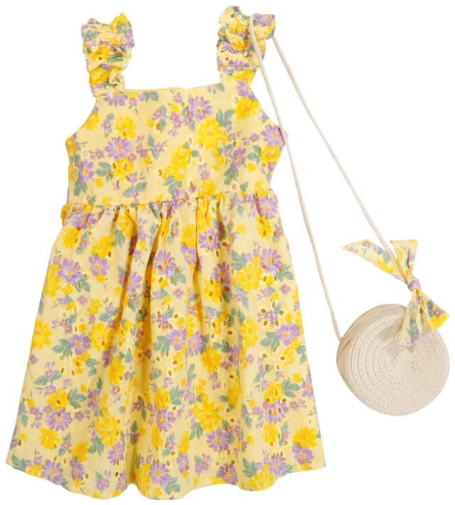 Btween Toddler Girls 2 pc Eyelet Dress and Woven Bag Set