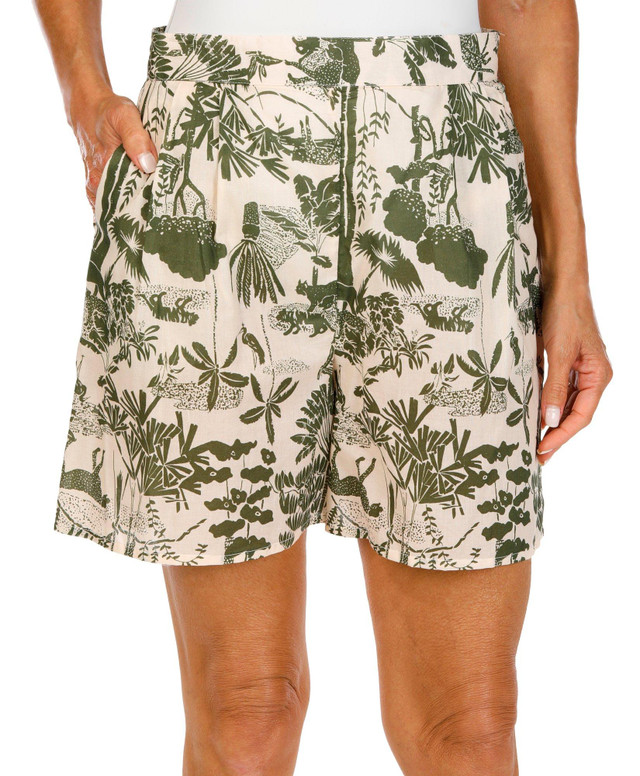 Breeze through summer in these fabulous cambric shorts, featuring a high-waisted fit and a bold safari print that is ready for adventure. Made from ultra-lightweight fabric, they are perfect for hot days when comfort is key. The elastic waistband offers easy wear and a flattering silhouette, while the breathable cambric keeps you cool. Pair them with a crisp white tee and you have got effortless style with a wild side.