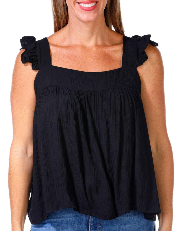 Feminine and flowy, the Women's Flutter Sleeve Tie Back Top features a square neckline and flutter short sleeves for a soft silhouette. The tie-back detail adds charm, while the solid color and relaxed fit make it perfect for both casual and dressy looks. Fabrication 100% rayon