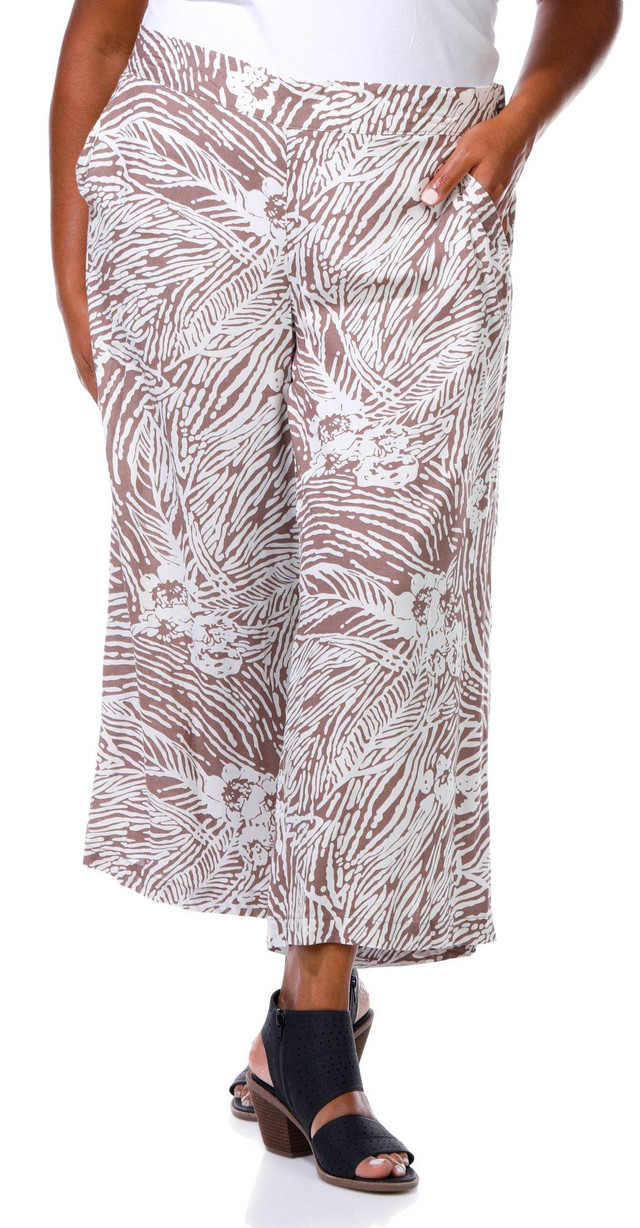 Embrace effortless style with these bohemian-inspired wide leg pants. The wide legs create graceful movement, while the eye-catching print adds a touch of whimsy. These pants come with two convenient side pockets and an elastic waistband for versatile styling. Perfect for warm days and carefree vibes! Inseam measures approximately 25 in. Fabrication is 100% rayon.