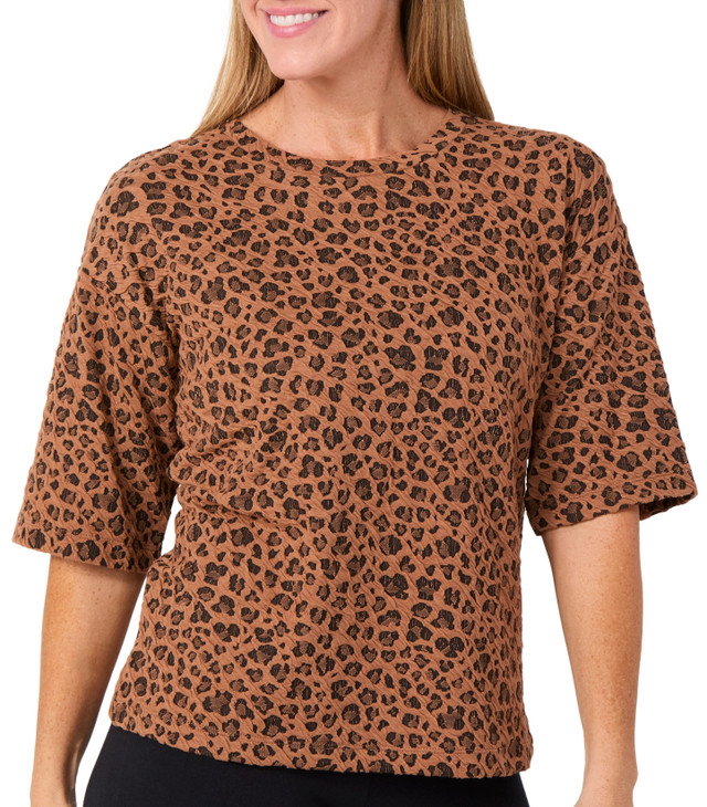 Bunulu Womens Short Sleeve Cheetah Jacquard Textured Top