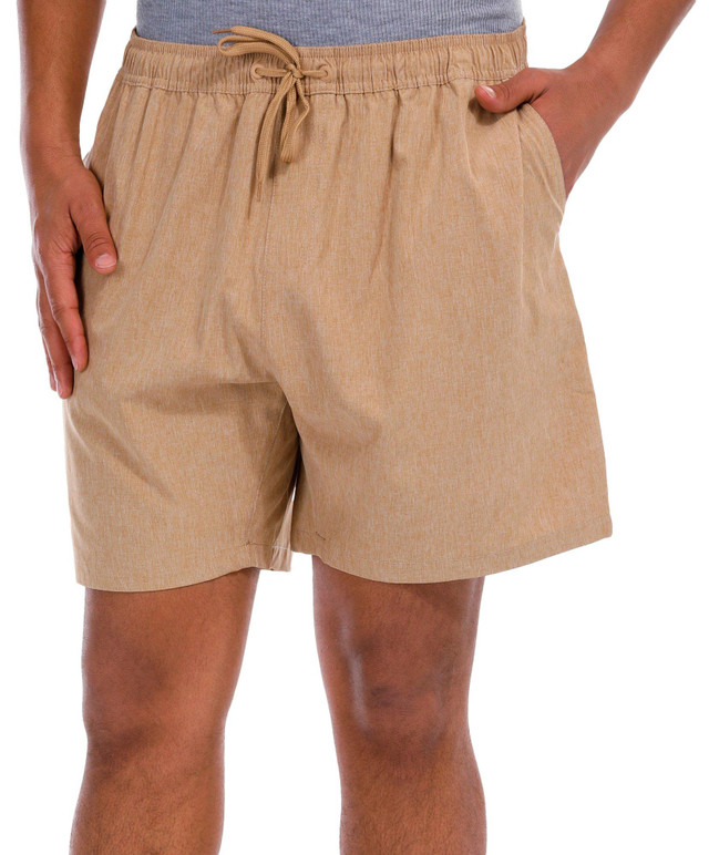 The Men's 6.5 in. Pull-On Hybrid Sunday Shorts are the perfect blend of comfort and style. Made from an 89% polyester and 11% spandex fabric, they offer a lightweight, stretchy fit that moves with you. Featuring a convenient drawstring waistband, these shorts provide a secure and adjustable fit. Ideal for relaxed weekends or casual outings, these 6.5-inch inseam shorts offer both versatility and comfort.