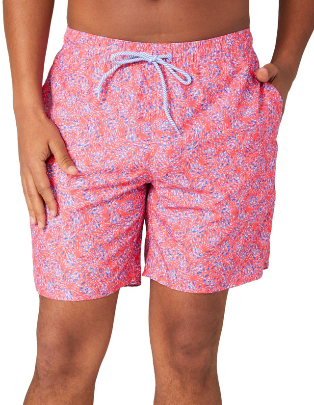Introducing the Men's Ditsy Paint Splatter Volley Shorts, crafted from 100% polyester for ultimate comfort and durability. These stylish shorts feature a unique ditsy paint splatter print, adding a playful touch to your summer wardrobe. Designed with practicality in mind, they include a drawstring waistband for a perfect fit, side pockets for convenience, and one back pocket for added functionality. With a 7-inch inseam, these shorts offer a modern, relaxed look ideal for any casual outing.