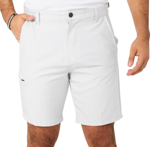 These Flex Zip Hybrid Shorts combine polyester and spandex for enhanced stretch and comfort. Featuring a solid color, button-fly zip front closure, 9 inch inseam, side seam and back pockets, they offer a sleek look with practical design. Built-in UV protection adds extra performance for active days.
