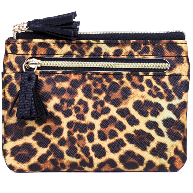 Make a bold statement with the Large Leopard Print ID Coin Case. Featuring a clear ID window for quick access, zip entry for secure storage, and a back zip pocket for added convenience, this compact accessory combines wild style with everyday functionality. Measures 5.5 in x 4 in