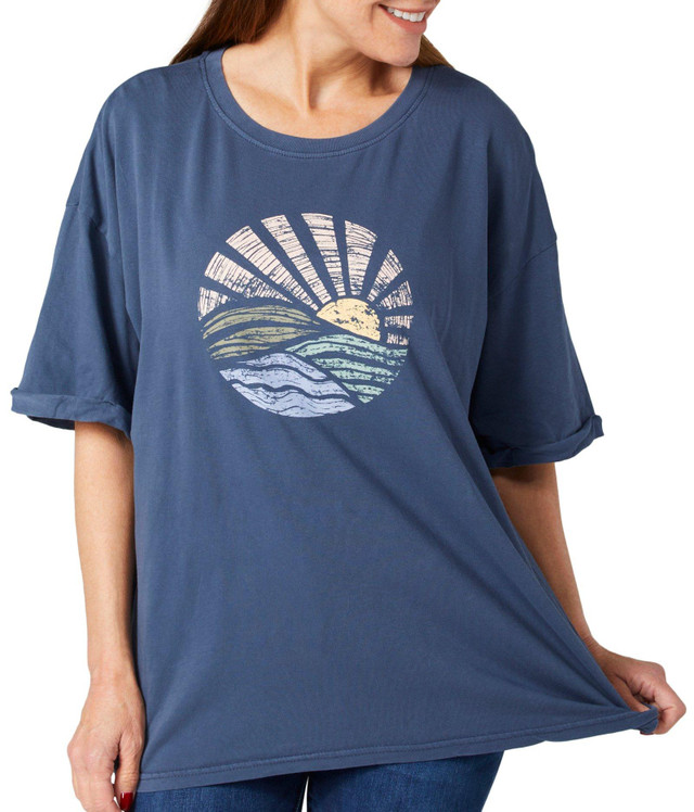 Add a touch of natural charm to your wardrobe with the Graphic Drew Boyfriend Tee. Featuring a beautiful front sunrise graphic, this tee is crafted from soft cotton for ultimate comfort. The relaxed boyfriend fit provides a laid-back, stylish look, perfect for casual outings or lounging at home. Pair it effortlessly with jeans, shorts, or skirts for a versatile and fashionable ensemble.