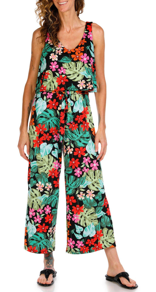 Step into effortless style with this Women's Sleeveless Floral Jumpsuit. Made from a soft polyester blend, it features a bold print and a flattering fit that's perfect for day or night. The sleeveless design adds a breezy touch, making it a go-to piece for warm-weather outings or casual-chic events.