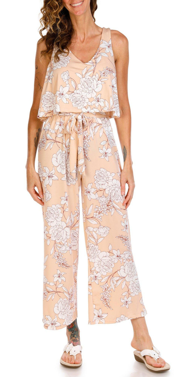 Step into effortless style with this Women's Sleeveless Floral Jumpsuit. Made from a soft polyester blend, it features a bold print and a flattering fit that's perfect for day or night. The sleeveless design adds a breezy touch, making it a go-to piece for warm-weather outings or casual-chic events.