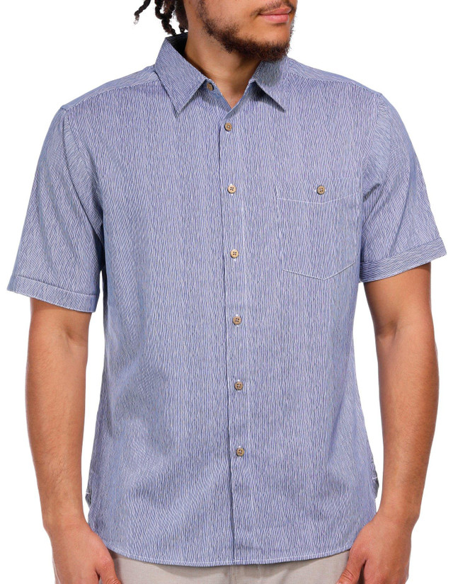 Keep it classic and comfortable with the Men's Mini Stripe Button Down Shirt, crafted from 100% rayon for a lightweight, breathable feel. Featuring a subtle mini stripe pattern and relaxed fit, it is perfect for casual days, weekend outings, or layering with your favorite basics.