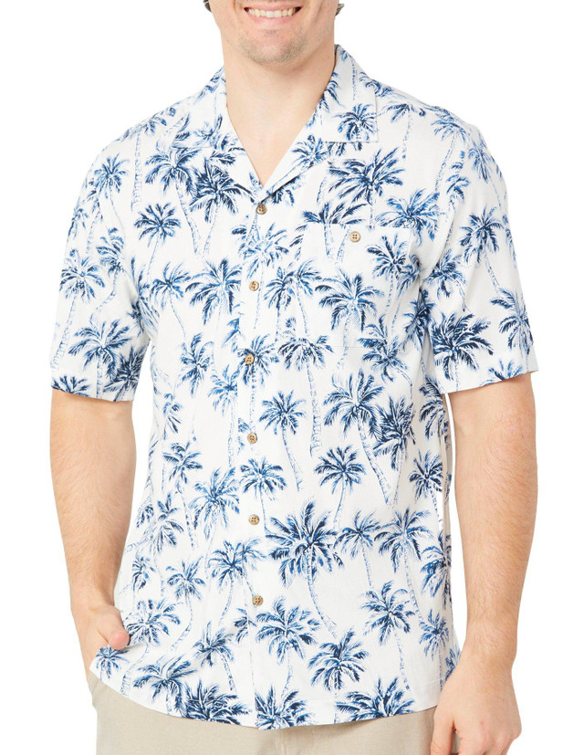 Relax in style with this Men's Short Sleeve Multi Palm Button Down Shirt. Crafted from soft fabric, it features a breezy short sleeve cut, classic collar, chest pocket, and a button down front closure. Perfect for sunny days and laid back vibes. Fabrication 98% rayon, 2% spandex.