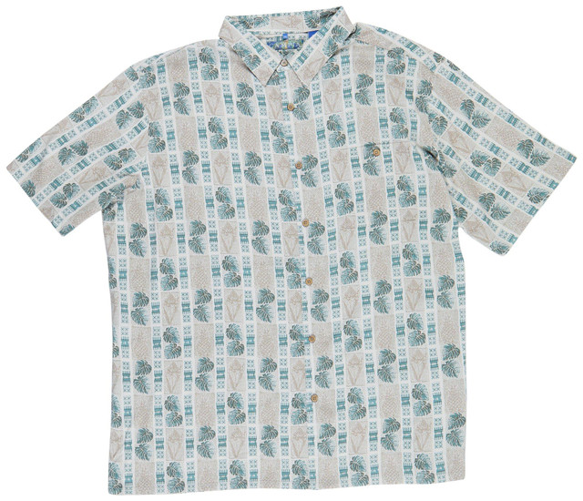 Step into laid-back style with this Men's Short Sleeve Window Box Button Down Shirt. Made from a soft rayon-spandex blend, it features a breezy palm print, button-down front, collared neckline, and short sleeves. Perfect for warm-weather comfort with a touch of tropical flair.