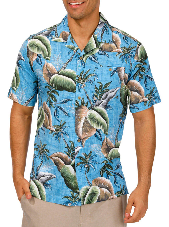 Bring paradise to your wardrobe with this short sleeve shirt, featuring a classic buttoned front, chest pocket, and a vibrant tropical palm print. Designed for comfort and style, its lightweight fabric keeps you cool while the bold pattern adds a splash of island flair. Perfect for sunny getaways or brightening up your everyday look. Fabrication is 98% rayon, 2% spandex.