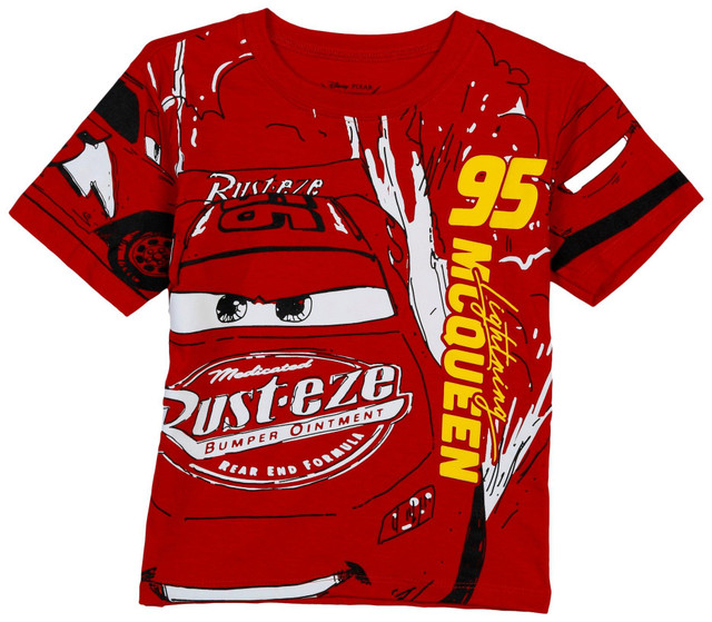 Add high speed style to casual looks with the Boys Oversized Lightning McQueen T-Shirt. Featuring an allover print of Lightning McQueen in bold colors, it captures the excitement of racing for everyday wear. Ideal for school, play, or relaxed outings. Fabrication is 65% polyester, 35% cotton.