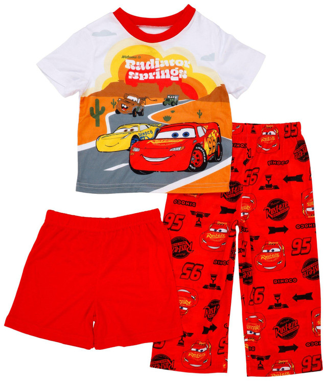 Drift into dreamland with this 3 Pc Pajama Set, crafted for all-night comfort. Featuring a short sleeve sleep tee, matching shorts and cozy long pants, this matching set is designed to bring your childs favorite characters to bedtime. The soft, breathable fabric keeps little ones cool and comfortable through the night, while the elastic waistband ensures a secure and flexible fit. Perfect for lounging or sleeping late. Fabrication is: 100% polyester.