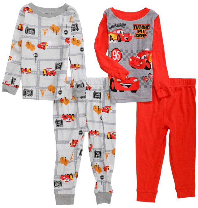 Add racing fun to bedtime with the Toddler Boys 4 Piece McQueen Road Long Sleeve Pajama Sets. Featuring two coordinated long sleeve and long pant sets with Lightning McQueen graphics, they offer mix and match options for cozy nights. Ideal for keeping little ones warm and comfortable. Fabrication is 100% cotton.