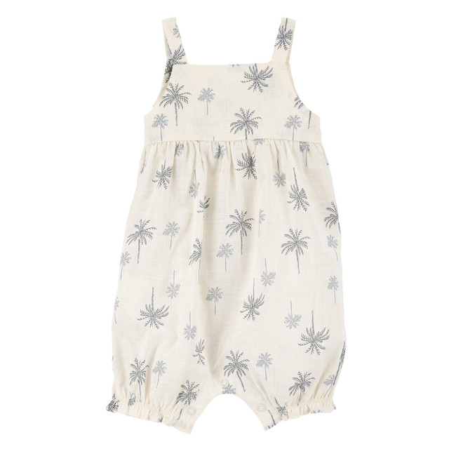 Complete with a palm tree print, his romper is soft and perfect for your little girl.Strong snaps at the legs keep up with wear, wash, repeat. 100% cotton rib.