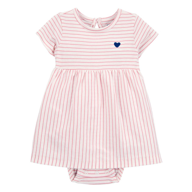 Looks like a dress but built like a bodysuit, what could be better? Complete with allover stripes and easy snaps at the legs for quick changes, this sunsuit gets baby ready in no time!