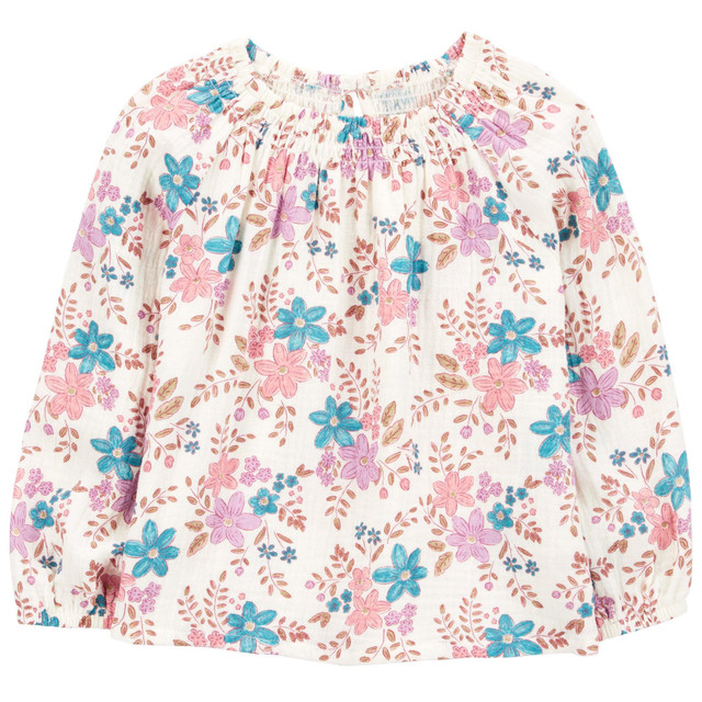 Designed with colorful floral and soft and stretchy elastic at the neckline, this pretty top is perfect for your trendy girl to pair with her favorite jeans or easy on leggings.