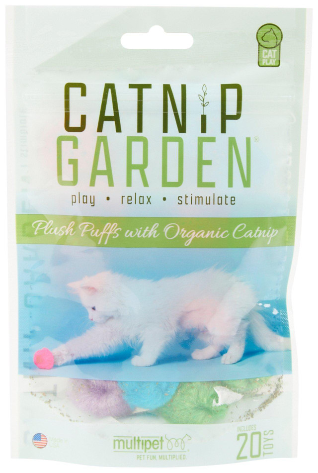 Customers and cats both love the Multipet Catnip Garden Catnip Puffs. These durable plush puffs are sprinkled with North n grown catnip, and encourage a cats natural need to play and exercise. Domestic cats need stimulation that an indoor environment does not always provide. Catnip Garden Catnip Puffs help to motivate your cat to interact. Rub a generous pinch of catnip between your fingers to release the aroma stored in the dried leaves and flowers.