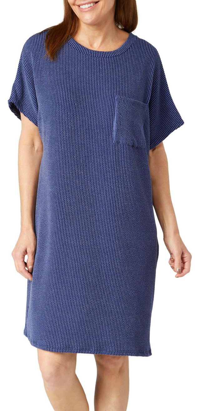 The Women's Short Sleeve Ribbed T-Shirt Dress offers effortless style and comfort with its soft, stretchy fabric. Designed with a flattering ribbed texture, this casual dress features a relaxed fit that can be dressed up or down. Perfect for any occasion, it provides a versatile and chic addition to your wardrobe.