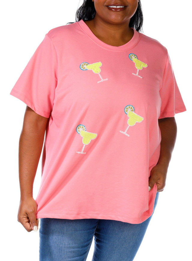 Elevate your wardrobe with this Short Sleeve Crew Neck Top. Featuring embroidered margarita glasses on the front, it combines casual style with everyday versatility for casual wear or relaxed outings. Ideal for pairing with leggings or joggers. Fabrication is 52% cotton, 48% polyester.