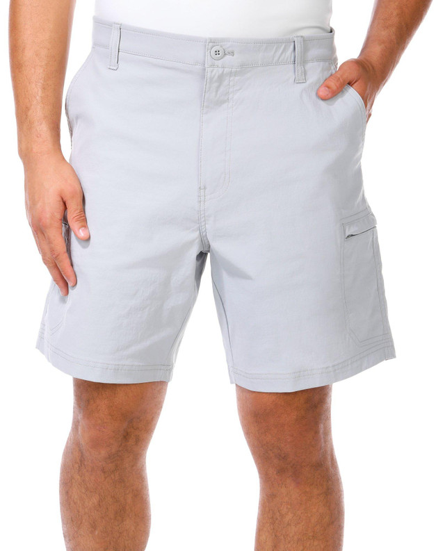 Upgrade your everyday wear with our Men's Everyday Performance Cargo Shorts. Designed in a solid color with an 8-inch inseam, they feature a button-fly zip closure, side, cargo and back pockets, and moisture-wicking fabric to keep you cool and dry all day. Fabrication 95% nylon, 5% spandex