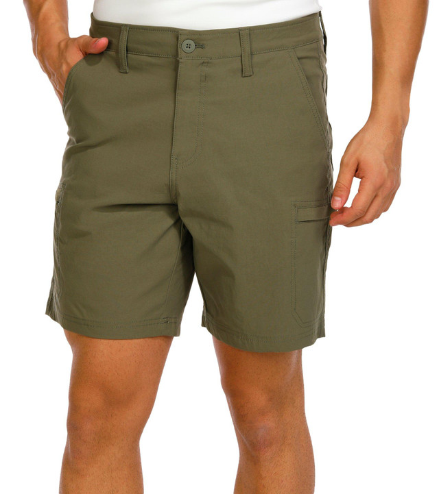 Upgrade your everyday wear with our Men's Everyday Performance Cargo Shorts. Designed in a solid color with an 8-inch inseam, they feature a button-fly zip closure, side, cargo and back pockets, and moisture-wicking fabric to keep you cool and dry all day. Fabrication 95% nylon, 5% spandex