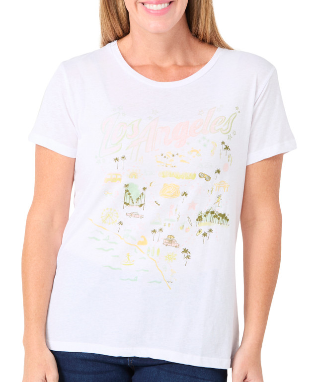 Add a playful touch to your wardrobe with this Los Angeles print tee. Made from a soft and breathable blend of 60% cotton and 40% polyester, it offers all-day comfort and a relaxed fit. Machine washable and safe to tumble dry, its perfect for casual wear and easy care.