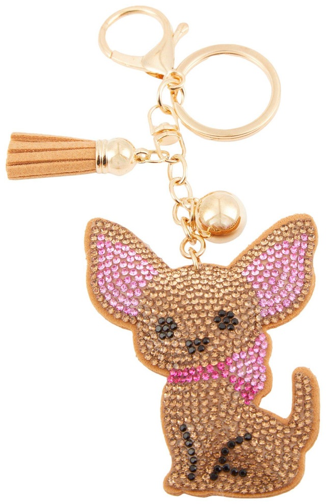 Add a playful sparkle to your accessories with this 3-inch Chihuahua Bag Charm! Featuring a dazzling rhinestone exterior and a chic gold-tone lobster claw closure, it is the perfect blend of glam and cute for your purse, backpack, or keychain.