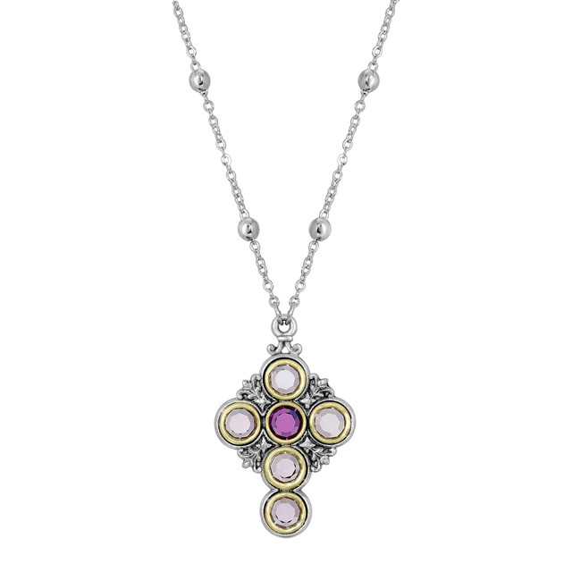 A pewter chain necklace showcases the warmth of the season. Our pewter necklace features a lovely crystal cross with light and dark purple tones. An ornate symbol of life and spirituality, the cross necklace is a reminder of our spiritual selves and of the opportunities that faith gives us. Length 16 in., width 23mm.